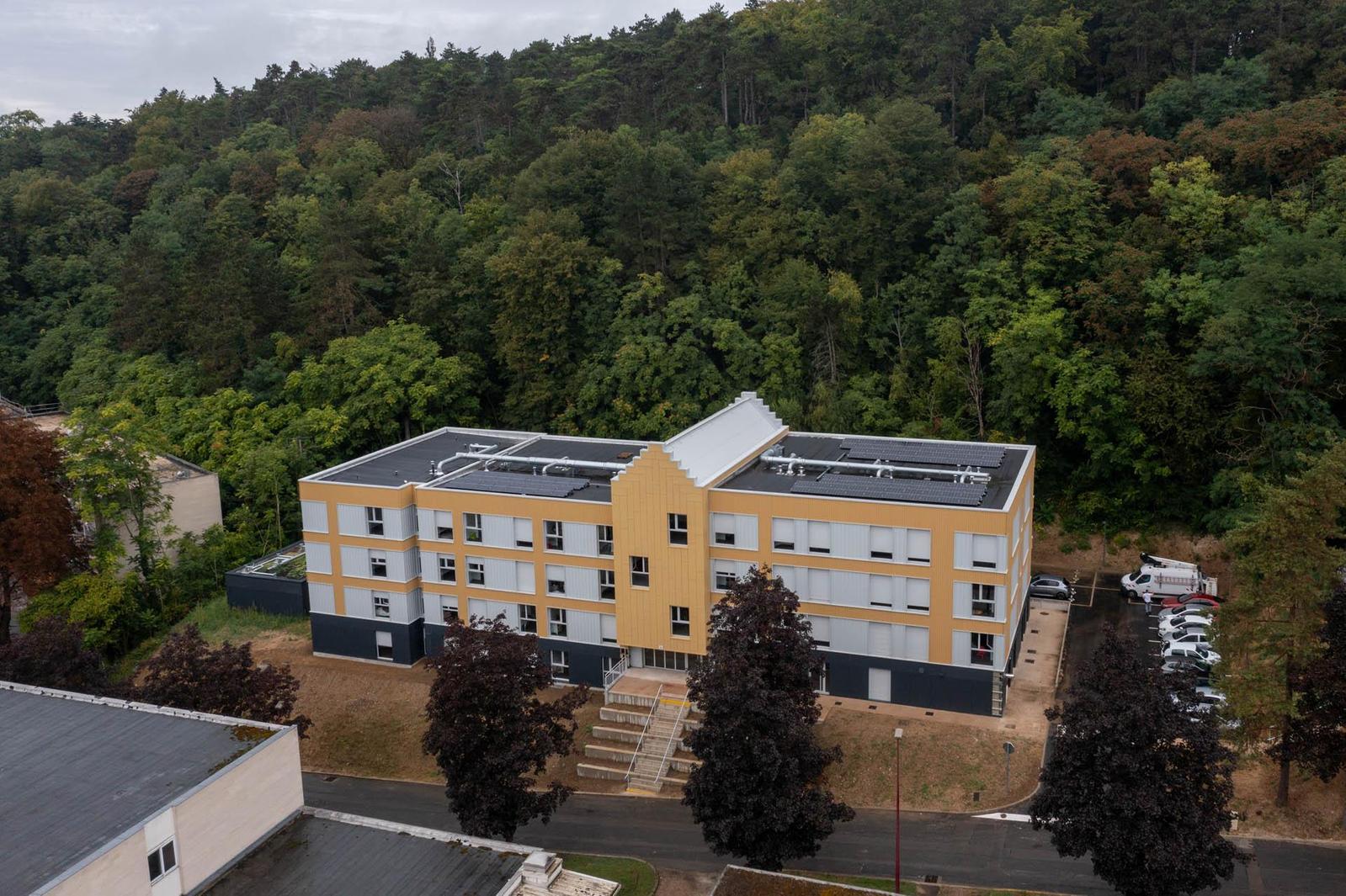 Le bâtiment intègre 120 kg/m² de biosourcé, permettant d’atteindre le seuil 2025 de la RE2020, ainsi que le niveau E3C1, obtenu grâce à l’installation de panneaux photovoltaïques sur le toit.