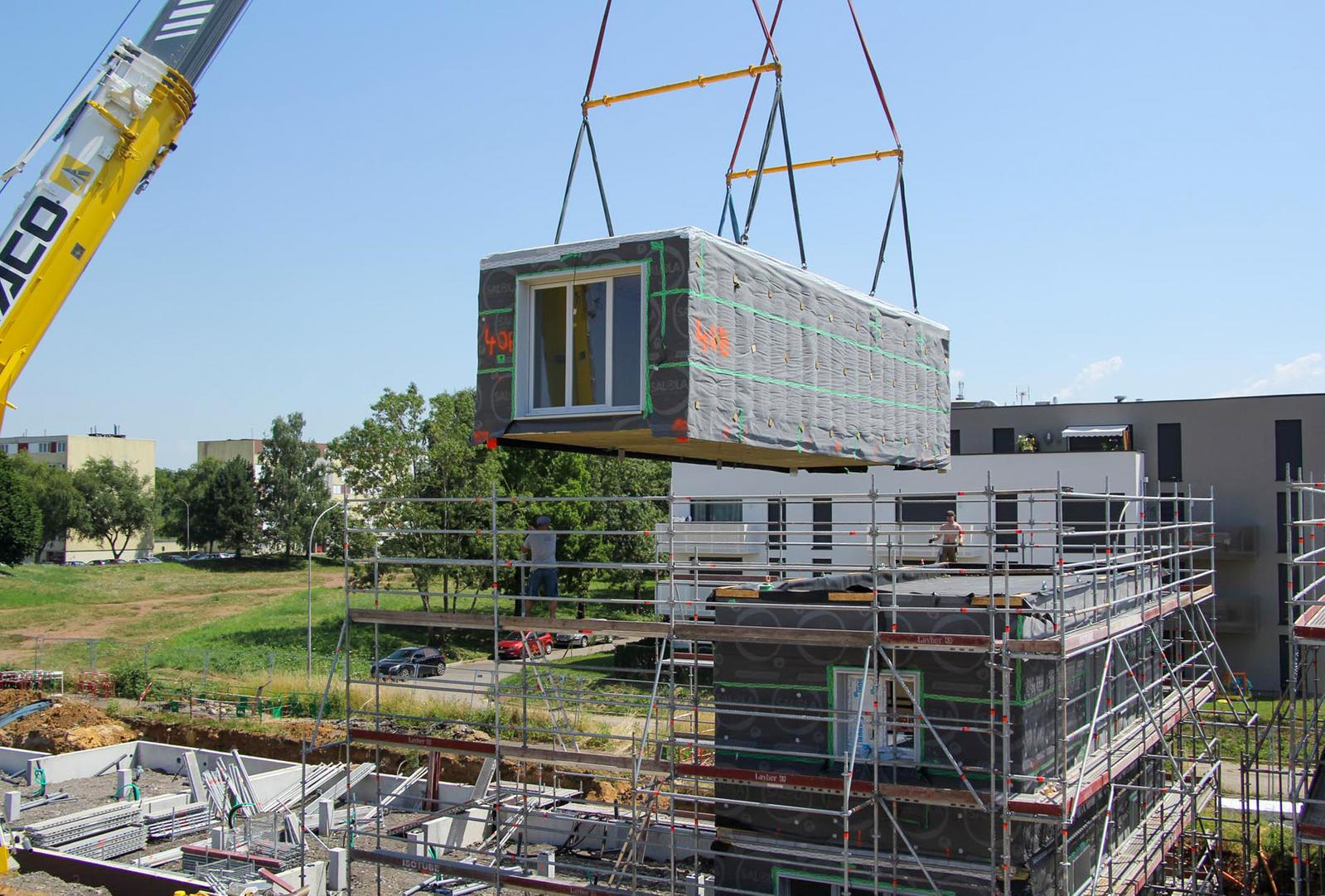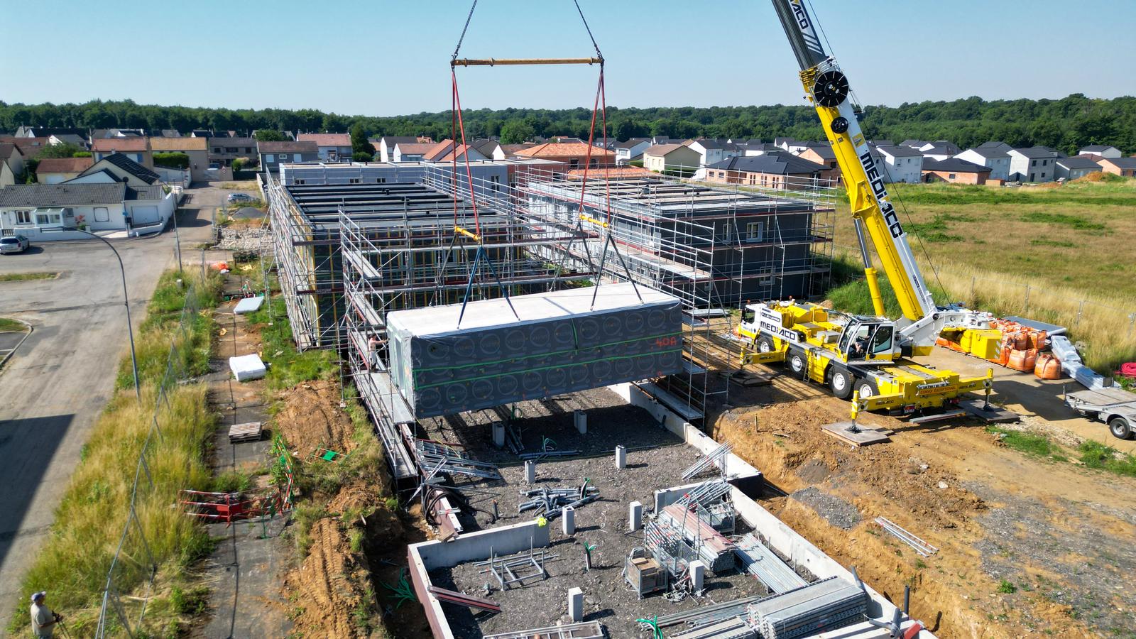 Le chantier s’est déroulé dans un délai performant de 10 mois entre la pose des modules et la livraison des logements. Ce calendrier serré est rendu possible grâce à la préfabrication industrielle en filière sèche, qui permet de sécuriser les délais tout en limitant les imprévus liés aux conditions météorologiques.