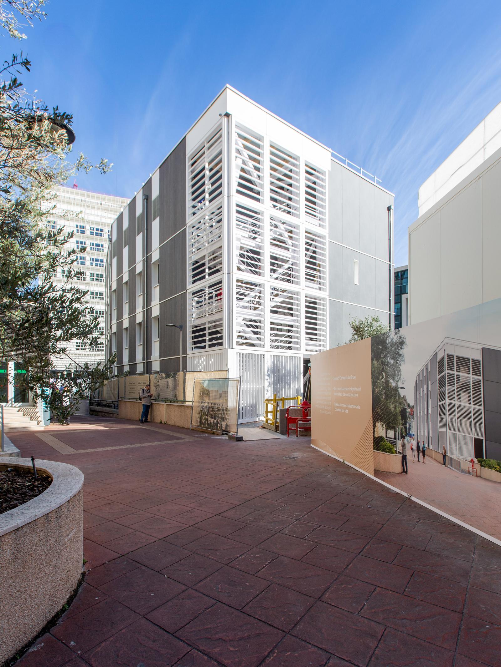 Livré en janvier 2025, ce bâtiment temporaire en structure modulaire bois est dédié au Centre de Transfusion Sanguine et au Service d’Anatomopathologie du Centre Hospitalier Princesse Grace de Monaco.