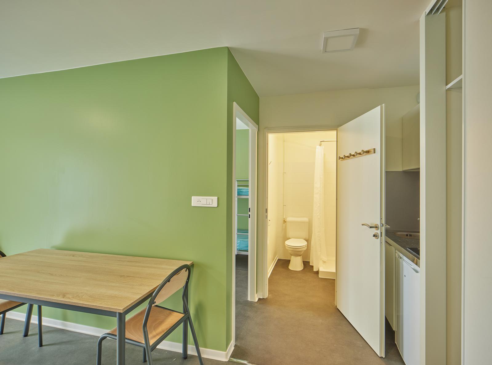 Le centre, constitué de 2 bâtiments de 3 niveaux, compte 49 appartements de type T1 bis, T2, T2 bis et T3, comprenant pièce de vie avec coin cuisine, une salle de douche et sanitaires, et une ou plusieurs chambres.