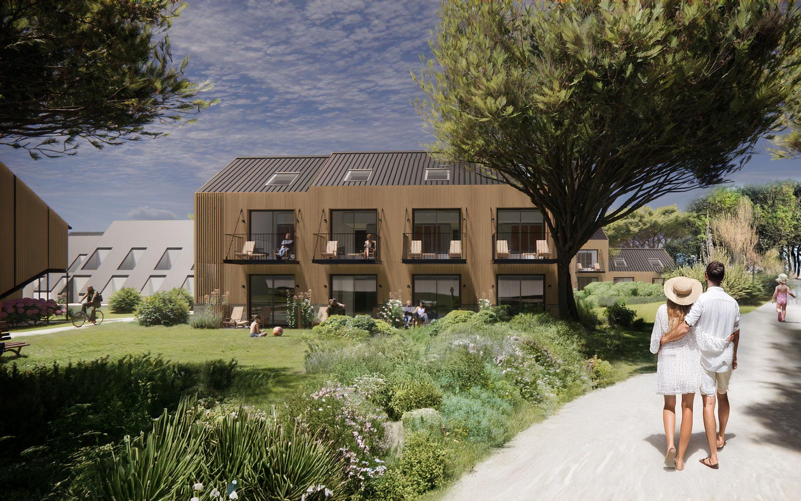 L’extension du Club Belambra de Guidel consiste en la réalisation de 82 chambres réparties en 9 bâtiments en structure bois. Chaque bâtiment, de R+1 sans sous-sol, s’insère dans une trame arborée en bordure de l’océan Atlantique sur un parc paysager de 11 hectares.