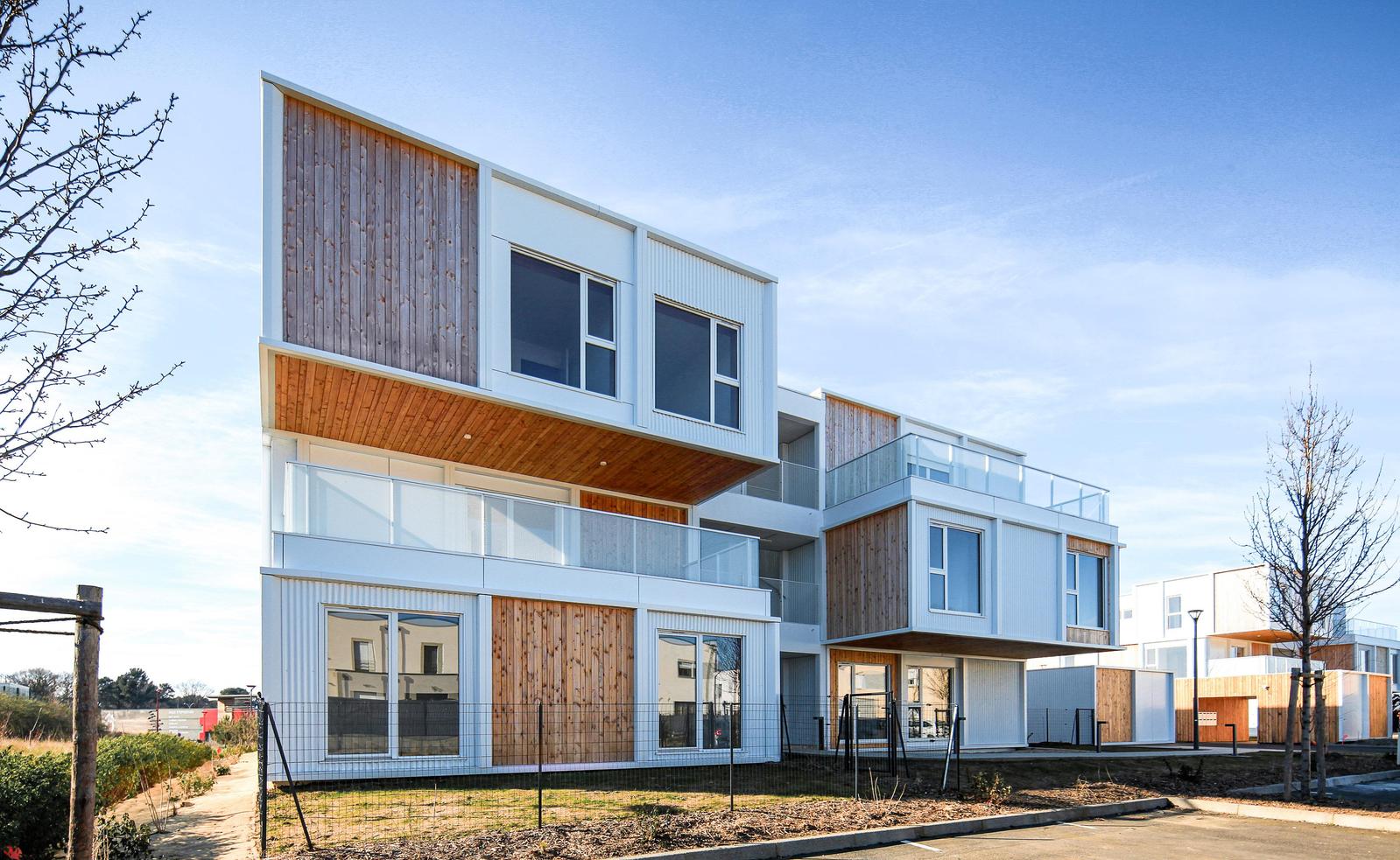 Le projet présente une démarche bio sourcée de niveau 2, supérieur à 24 kg/m² de surface de plancher. Il est RT2012 -20% et labellisé NF Habitat HQE. Les containers étant recyclés par le haut (up-cycling), le projet intègre une démarche bas carbone forte.