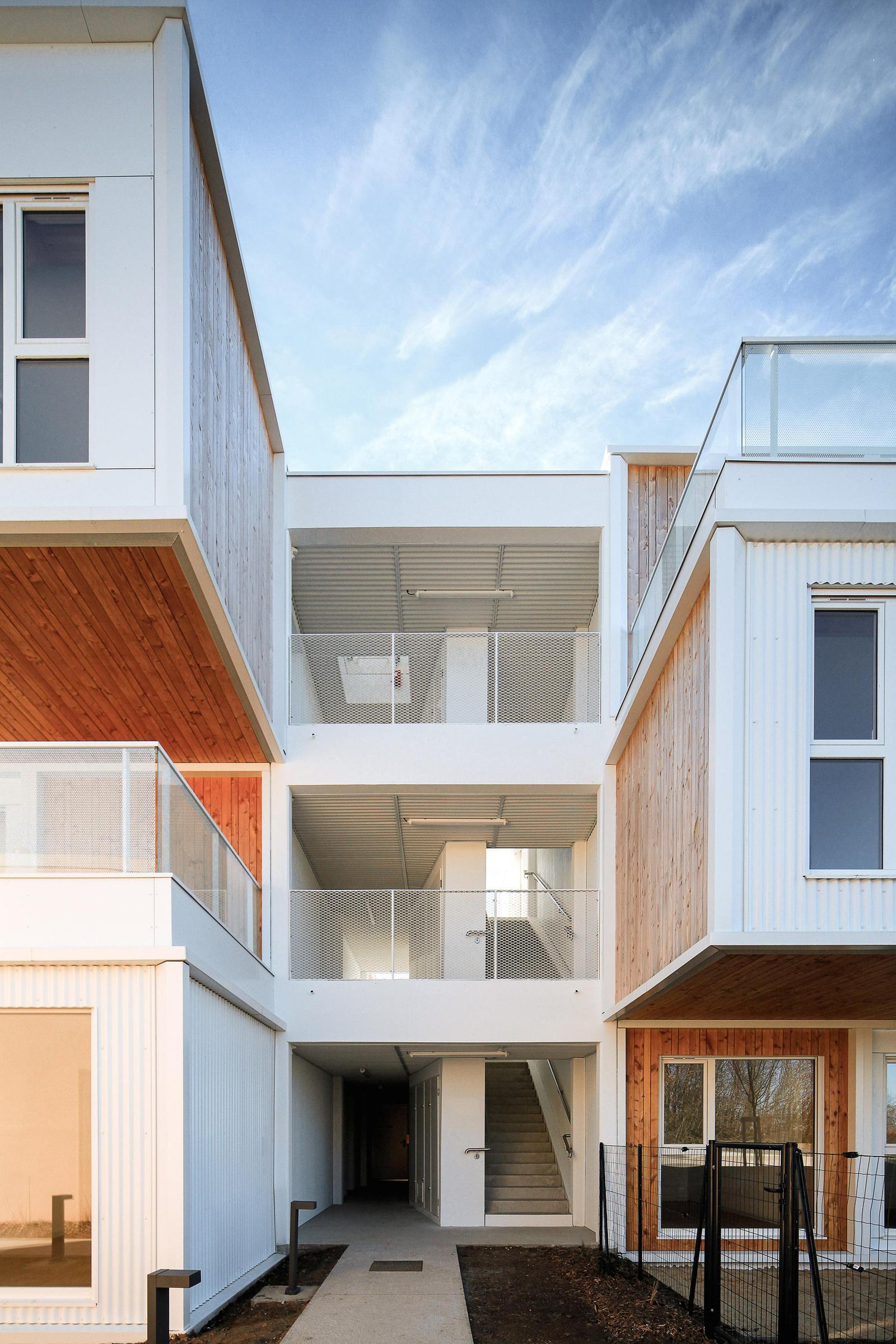 Le projet est classé en 2ème famille, la stabilité au feu des structures est de 30mn. Il n’y pas de sous-sol. Le bâtiment n’est pas prévu déplaçable, il est cependant réversible car les plans des logements ne sont pas contraints par des murs porteurs ou des poteaux.