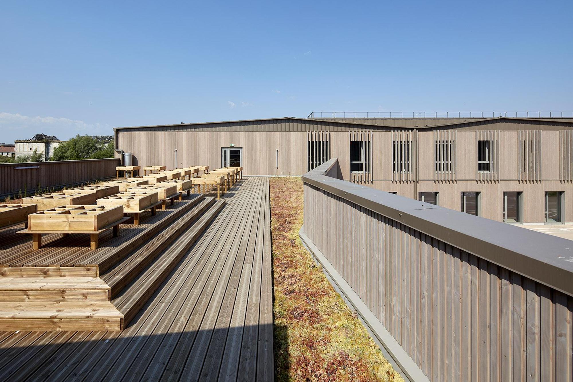 La méthode de construction modulaire 2D a permis de réaliser le clos couvert en moins de six mois. La gestion des déchets sur le chantier a été exemplaire, avec une valorisation efficace des déchets. Le chantier a généré le remplissage de 185 bennes avec une valorisation à 100% des Déchets inertes (DI), plastiques, plâtre et cartons/papier, une valorisation à 98% pour la ferraille, une valorisation à 85% pour les déchets bois et une valorisation à 75% des DIB (Déchets Industriels banals).